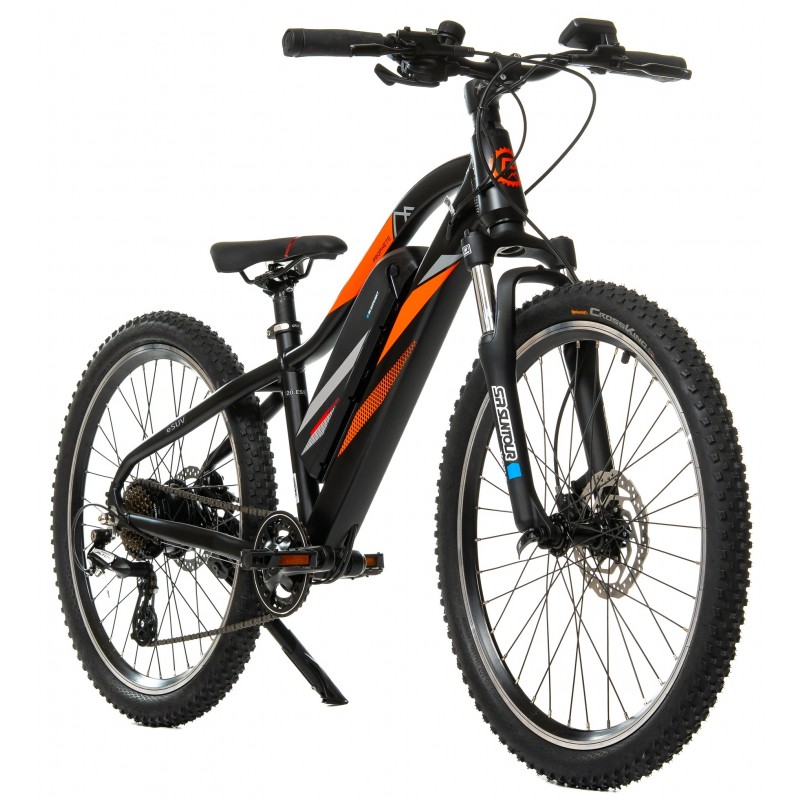| Informatii generale | Dimensiune Roata: 24 inch Ghidon: Alloy Downhill Material cadru: Aluminiu Model anvelope: Continental Cross King Model frana: Shimano MT200 hydraulic disc brakes Model furca: SR Suntur Suspension alloy Model manete schimbator: Shimano Tourney 7speed deraileur Model pedale: Flat pedals Model roti: Double Wall Rims Model schimbator pinioane: Shimano Tourney 7speed deraileur Motor: Blaupunkt, 36V, 250W, Rear Hub Motor Pipa: Alloy Putere motor: 250 W Sa: Team X2.4 (negru/rosu) Tija sa: 30,4 Alloy Transmisie: 1 x 7 Viteze |