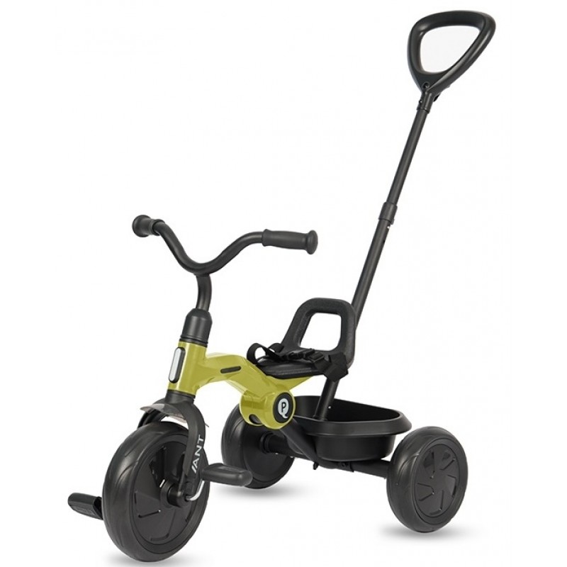Tricicleta Qplay Ant plus se pliaza intr-un mod compact, ceea ce o face usor de depozitat dar si de transportat multumita manerului de transport.