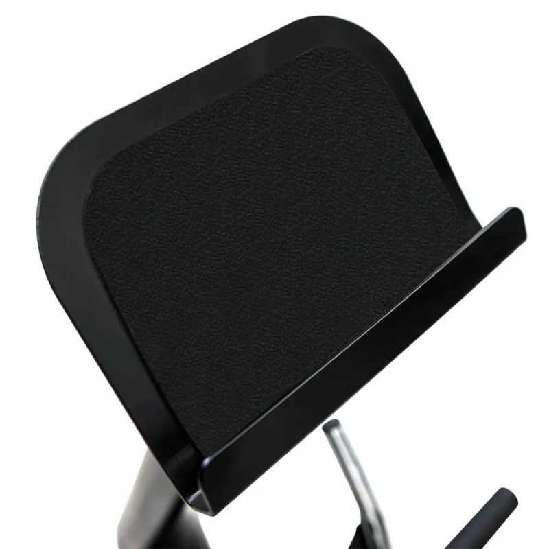 Antrenament spate: Apleacă-te înainte pe suportul pelvian reglabil pe 5 niveluri, apucă mânerul și ridică-te cu spatele drept. Acest exercițiu lucrează întreaga musculatură a spatelui.