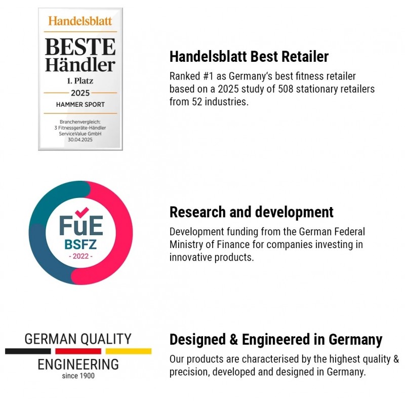 Cele două pachete de greutăți independente, fiecare de până la 50 kg, îți permit să adaptezi antrenamentul la nivelul tău de pregătire.