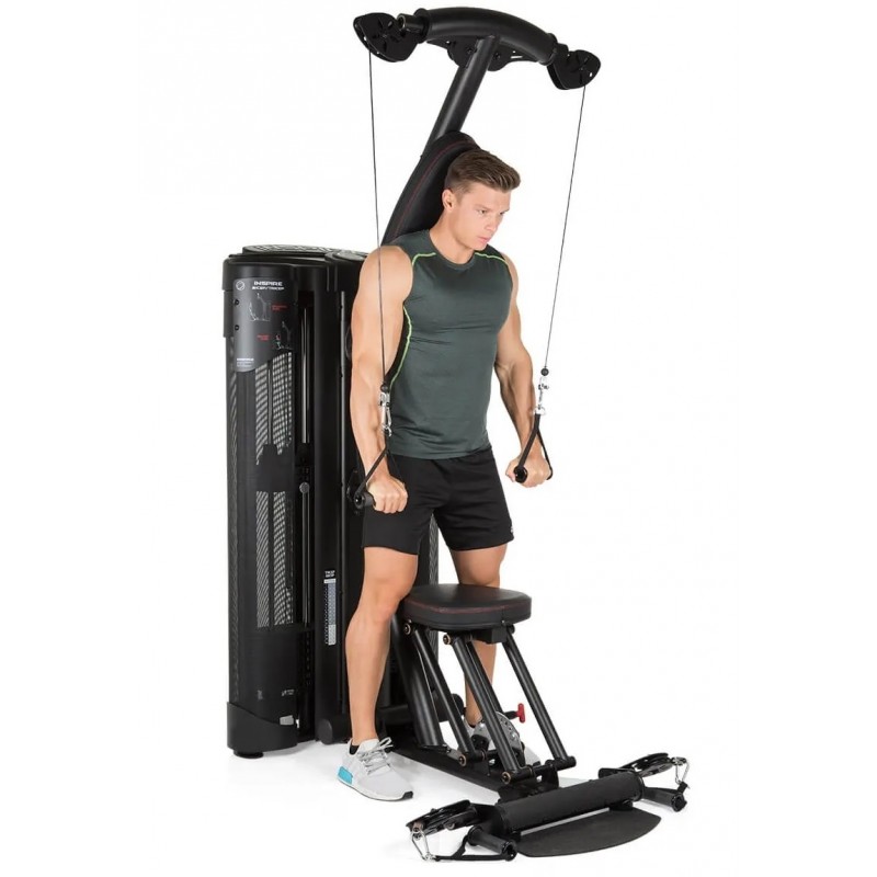 Scaunul reglabil și modulul cu scripete montat inferior permit execuția eficientă a biceps curls.