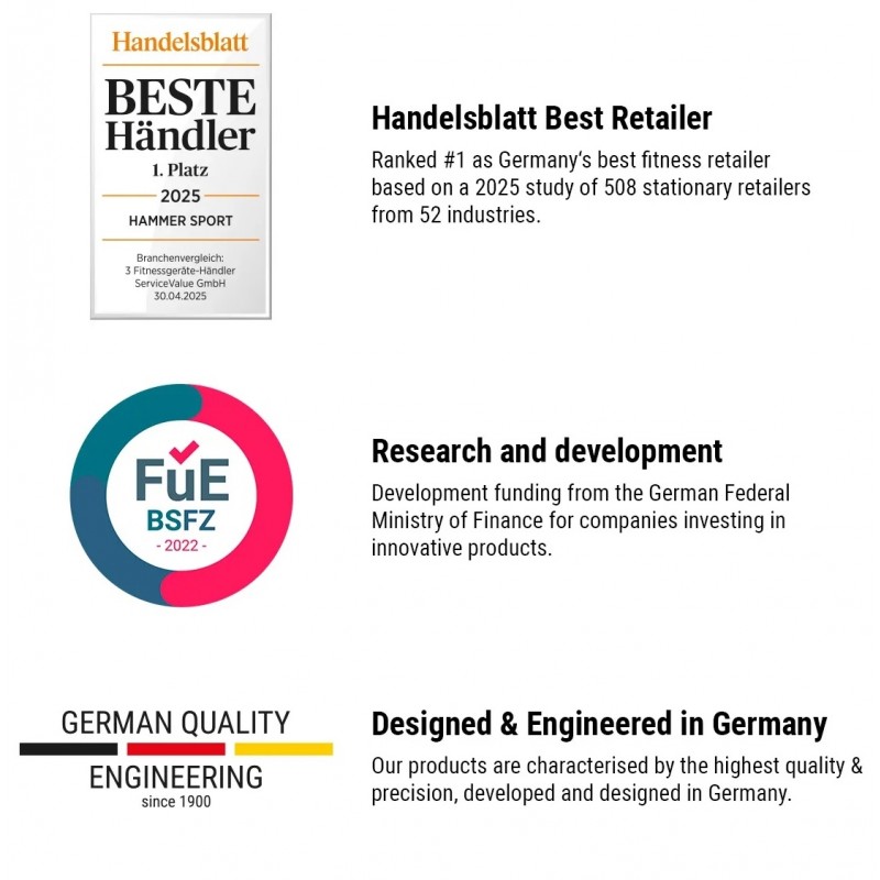 Cele două blocuri de greutăți separate (2 x 50 kg) permit un antrenament liber în care rezistența este distribuită uniform pe ambele brațe.