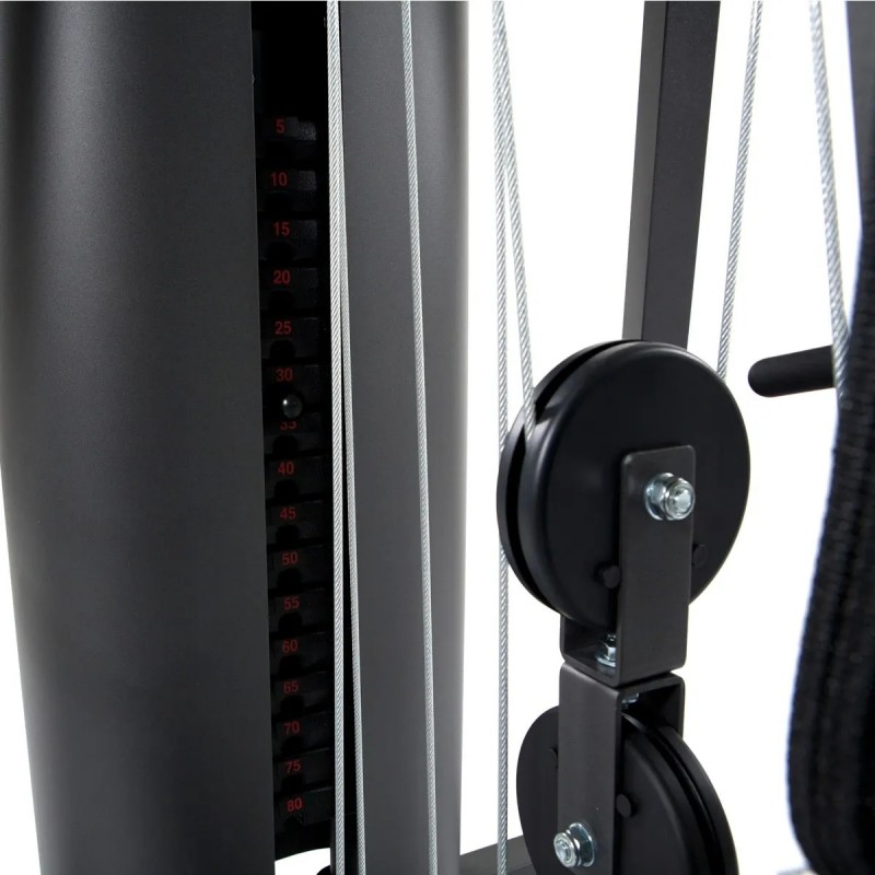 Cu statia de forta premium Autark 2500 de la FINNLO poti antrena toate grupele musculare importante, exact ca intr-un centru fitness profesional, dar in confortul propriei locuinte. Deoarece statia este echipata cu un bloc de greutati de 80 kg (optional disponibil si cu 100 kg), chiar si culturistii avansati pot construi masa musculara in mod eficient. Un scripete lateral, rotativ la 160°, permite exercitii izolate perfecte pentru partea superioara a corpului si pentru picioare. Muschii picioarelor pot fi lucrati eficient cu ajutorul unitatii separate, optimizate, de presa pentru picioare. Eficienta acestui exercitiu este comparabila cu genuflexiunile, dar fara a solicita spatele. Autark 2500 de la FINNLO este ideal si pentru intarirea muschilor zonei lombare, fesieri si gambe.