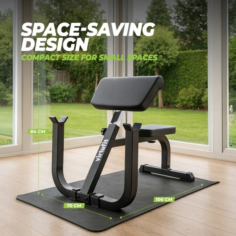 Pentru a proteja podeaua si echipamentele, Preacher Curl Station este echipata cu protectii din plastic la baza cadrului. In plus, suporturile pentru bara sunt acoperite cu cauciuc pentru a preveni deteriorarea acesteia. Aceste detalii inteligente reduc zgomotul, zgarieturile si uzura, oferind antrenamente mai silentioase si prelungind durata de viata a echipamentului.