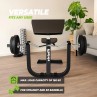 Preacher Curl Station este conceputa pentru a izola si controla bicepsii. Datorita suportului reglabil pentru brate, poti gasi cu usurinta pozitia corecta in functie de inaltimea ta, asigurand astfel o postura ergonomica in timpul antrenamentului. Suportul lat sustine optim bratele superioare si previne solicitarea inutila a altor grupe musculare. Captuseala este realizata dintr-un material durabil si confortabil, rezistent la utilizare intensa. Dupa fiecare set, poti aseza in siguranta bara pe suporturile integrate, care ofera stabilitate si confort in timpul antrenamentului.