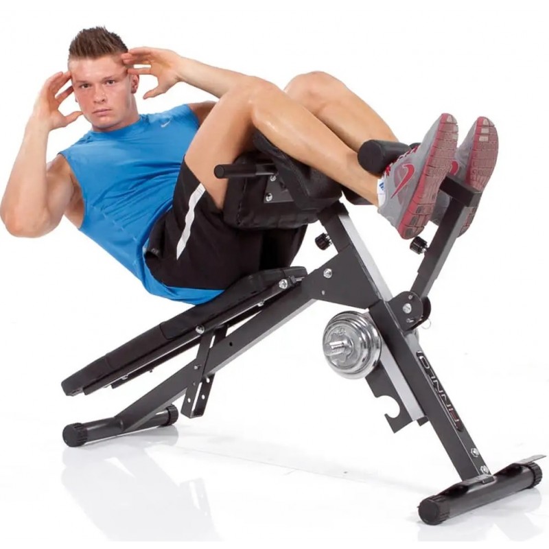 Cu FINNLO AB & BACK TRAINER beneficiezi de un aparat de fitness pentru acasa, care iti permite sa antrenezi usor toti muschii importanti ai abdomenului si spatelui. Poti efectua chiar si exercitii pentru fesieri si brate cu AB & BACK TRAINER. Cu doar cateva miscari rapide, FINNLO AB & BACK TRAINER este gata pentru urmatorul exercitiu. Compact si versatil – AB & BACK TRAINER de la FINNLO impresioneaza prin practicabilitate si eficienta: