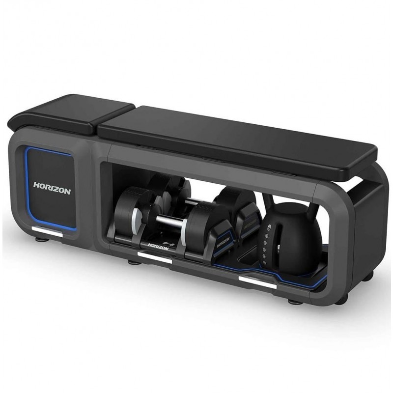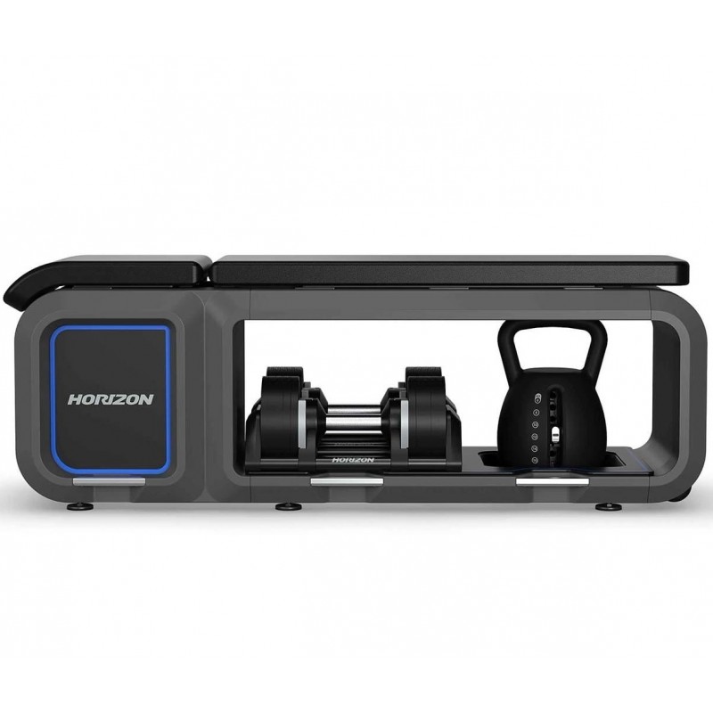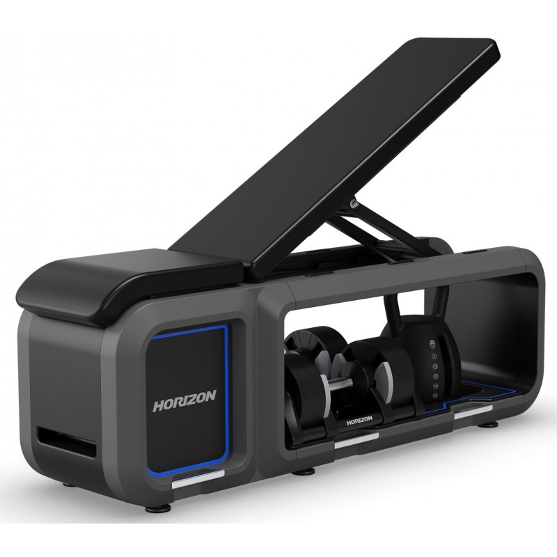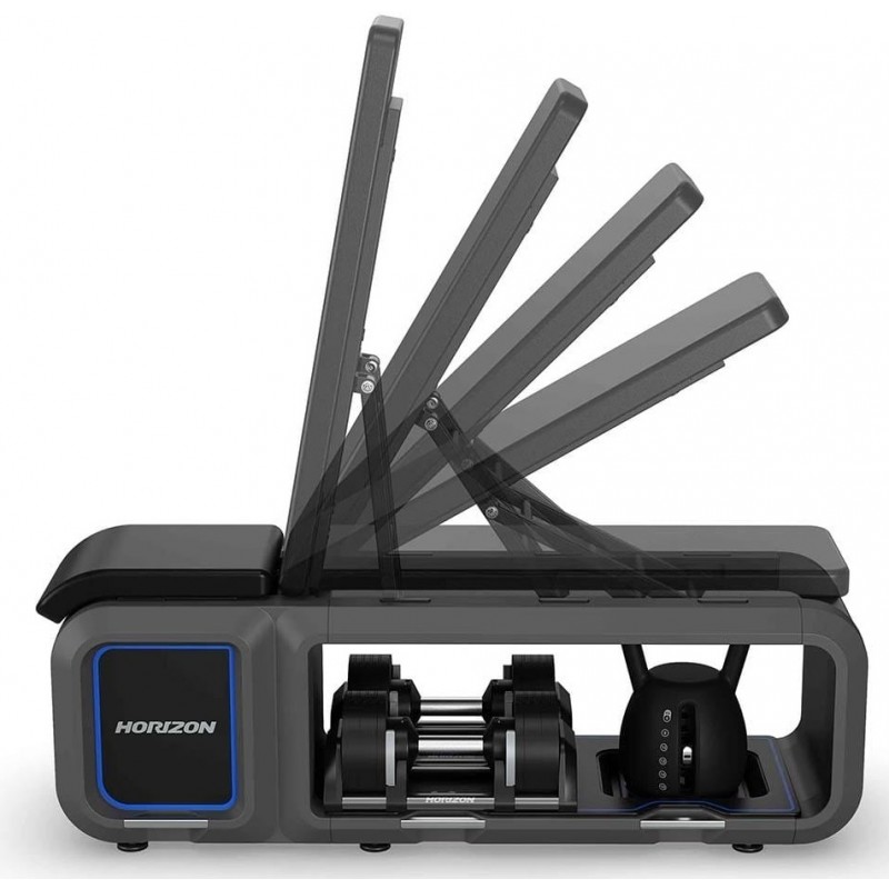 Noua noastra banca include gantere si kettlebell reglabile, un spatar ultra-confortabil care se ajusteaza in 5 pozitii diferite pentru antrenamente dinamice si se imperecheaza perfect cu aplicatia noastra exclusiva atZone pentru un antrenament personalizat pentru obiectivele tale. In plus, Banca Horizon este pliabila, pentru a reduce spatiul si a o depozita cu usurinta.