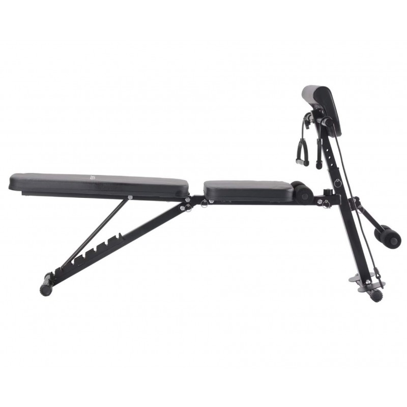 | Informatii generale | Functii: Leg Press, Corzi elastice, Reglaj spatar si sezut Design: Pliabil, compact, usor de depozitat Material cadru: Otel rezistent Culoare: Negru Utilizare: Antrenamente acasa, fitness general, tonifiere, forta |