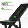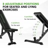 Spatarul poate fi reglat in 6 pozitii diferite pentru a permite antrenamente variate si o pozitie ergonomica corecta. Banca poate fi utilizata in pozitie inclinata, orizontala sau declinata, oferind flexibilitate pentru diferite exercitii.