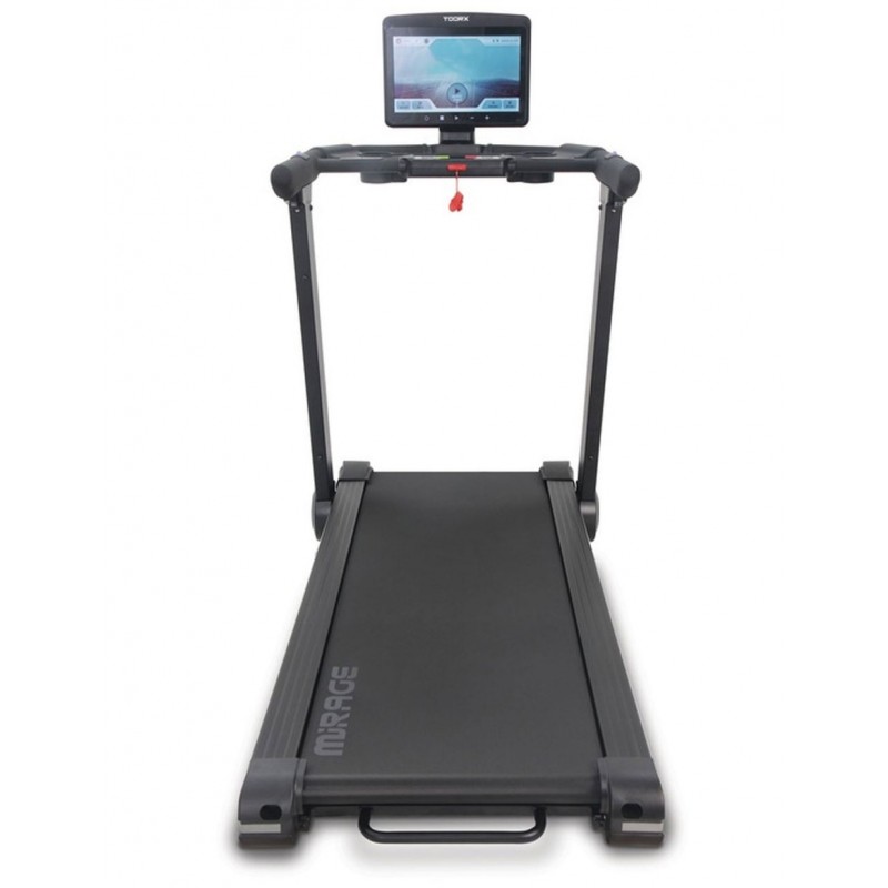 Echipata cu un ecran tactil TFT HD de 15,6", Toorx Mirage C90 TFT ofera acces direct la aplicatii populare, internet si platforme de streaming (unde este permis), pentru antrenamente interactive si motivante. Suprafata de alergare generoasa si inclinarea motorizata permit sesiuni variate, de la mers rapid la alergare intensa.