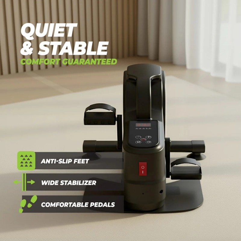Pentru confort și siguranță suplimentare, MB450 este echipată cu pedale reglabile cu prindere Velcro, menținând picioarele sau mâinile ferm poziționate în timpul exercițiilor. Stabilizatorul lat și picioarele antiderapante oferă aderență excelentă, astfel încât te poți antrena în siguranță și confort, oriunde te-ai afla.