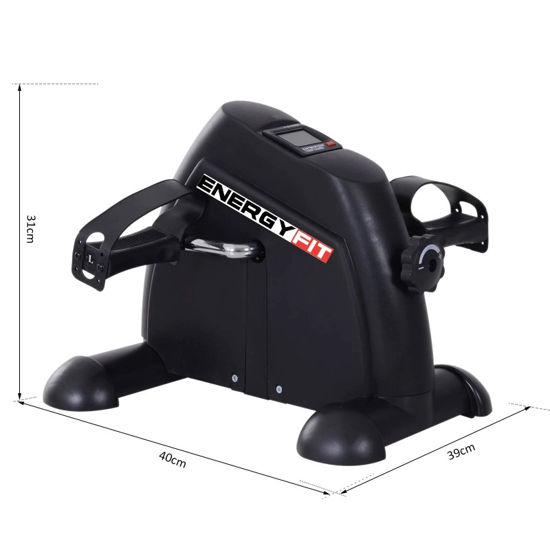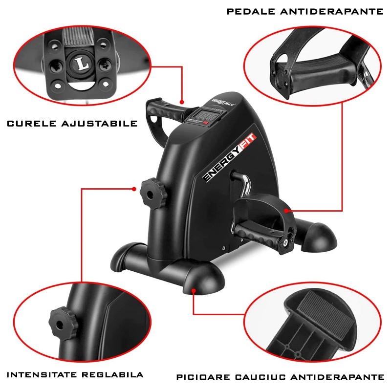 | Informatii generale | Mini bicicleta fitness Energy Fit Gama: uz casnic Volanta 2kg Sistem de franare mecanic Rezistenta reglabila Functii calculator: timp, calorii, distanta, totaluri Pedale confortabile; curele ajustabile; antiderapante Pedalarea se poate face in fata sau in spate |