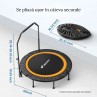 PLIABILĂ ȘI ECONOMISITOARE DE SPAȚIU - Când nu aveți nevoie să utilizați sau să transportați trambulina de fitness pentru adulți, aceasta poate fi pliată cu ușurință în câțiva pași simpli. Când este pliată, poate fi depozitată convenabil într-un colț, în portbagajul mașinii sau lângă un dulap, cu condiția să existe suficient spațiu pentru depozitare când este pliată. Asamblarea acestei mici trambuline este o joacă de copii și durează doar câteva minute.