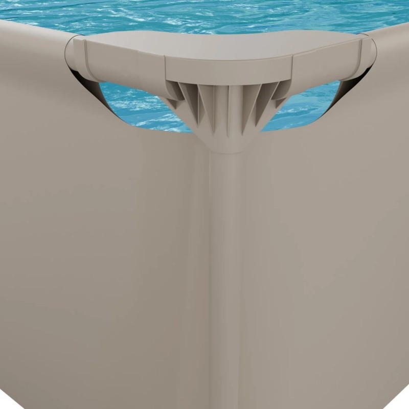 Piscina este realizata din PVC rezistent in 3 straturi, conceput pentru utilizare intensa si expunere indelungata la apa si soare. Cadrul robust din otel asigura stabilitate excelenta, chiar si in timpul utilizarii active. Picioarele verticale ofera suport optim pentru mentinerea formei piscinei.